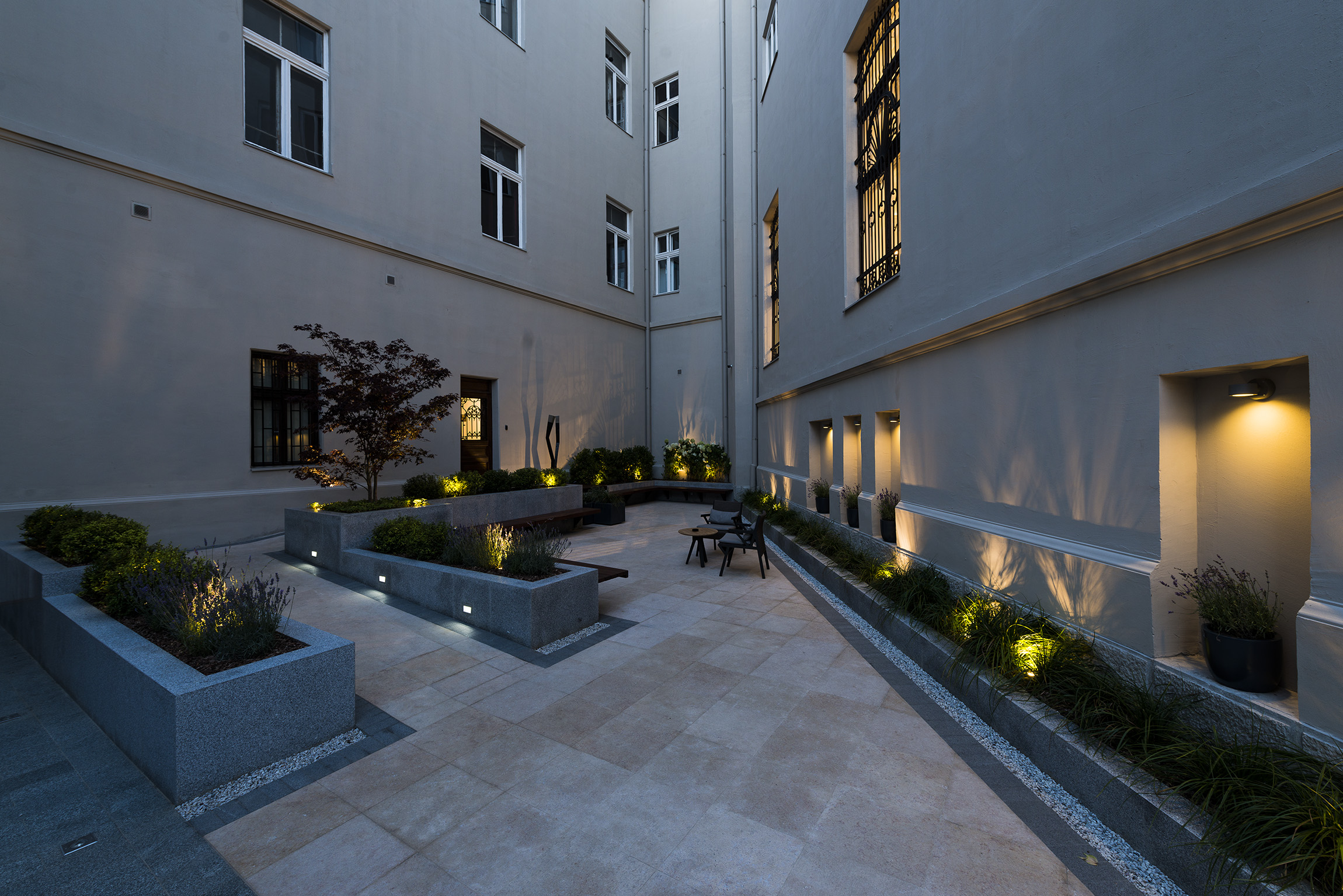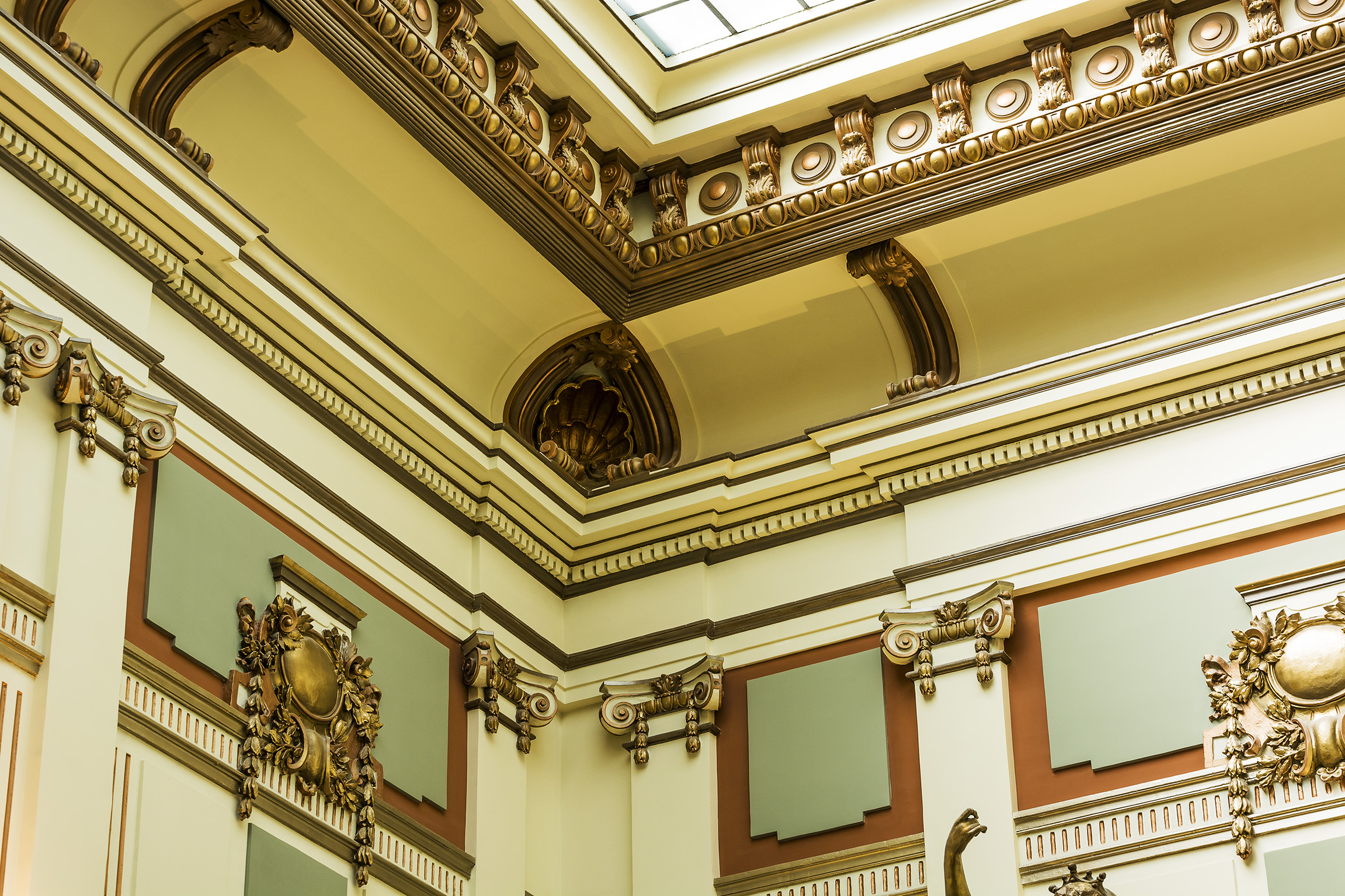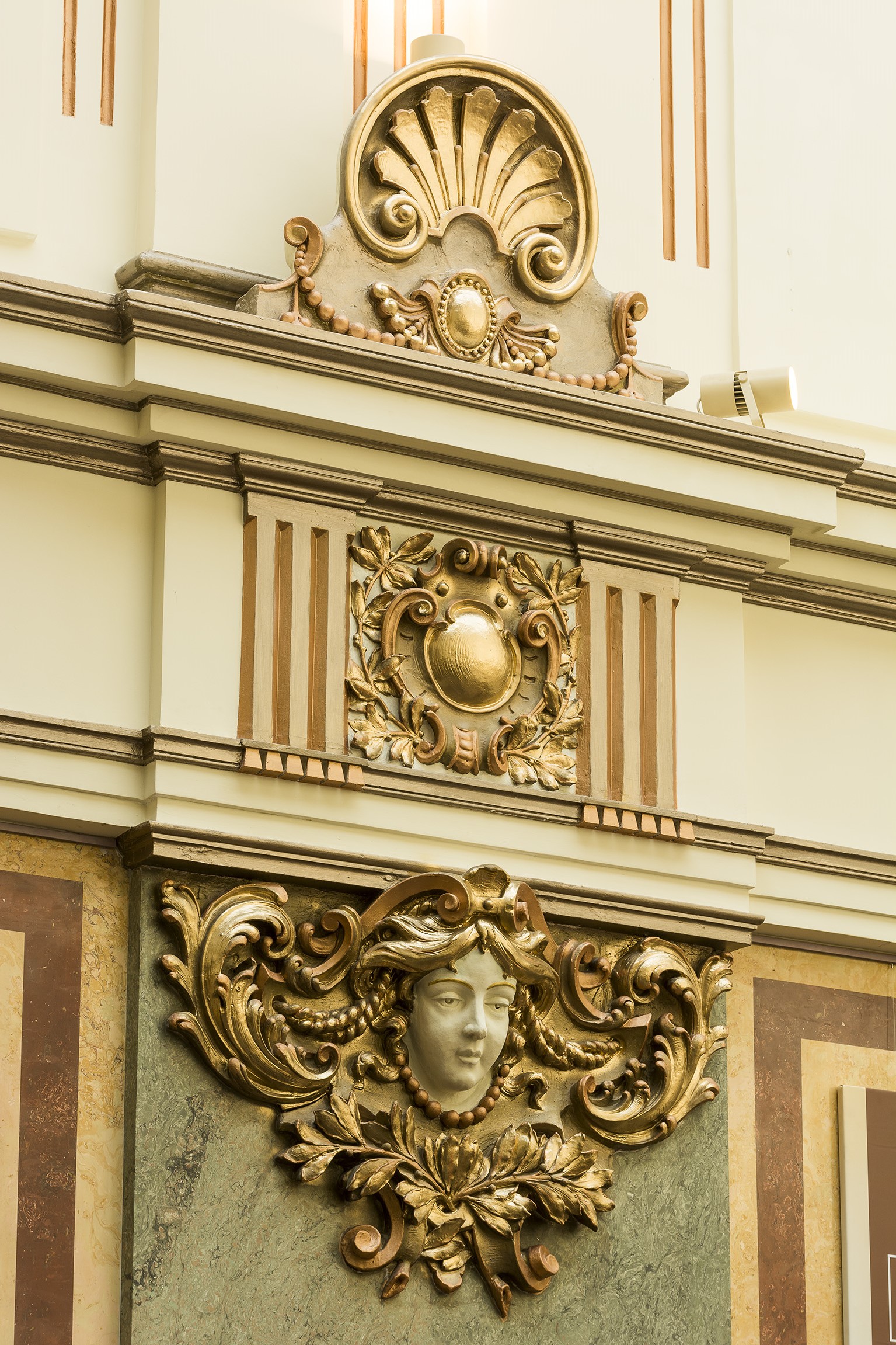 Unutrašnji radovi obuhvatili su restauraciju originalnih dekorativnih elemenata, uključujući štukaturske radove na zidovima i tavanicama, koje je prvobitno izradio Franja Valdman. Posebna pažnja posvećena je obnovi dekorativnih slikarskih radova u glavnom ulazu, delo Bore Kovačevića i Andreje Domenika, kao i restauraciji staklenih slikarija R. Markovića.